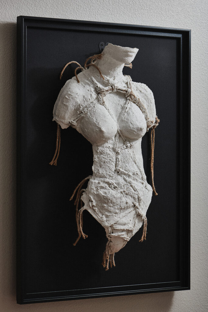 Dan about his project: “In my experiments with the conventional art mediums through which I express my METAMORPHIC SCULPTURES, I have now finally achieved a three-dimensional representation of them. This marks the peak of a process that began with the meditative, fleeting form of a transformed body through rope and fabric, photographed in two-dimensional images and animations. And it culminates now in an abstract three-dimensional form, held in space by plaster and rope. But despite the remaining sculpture, it still only shows a hollow imprint of the original creation which has already passed. Nevertheless, my art is a reflection on the continuous change and transformation of life.”